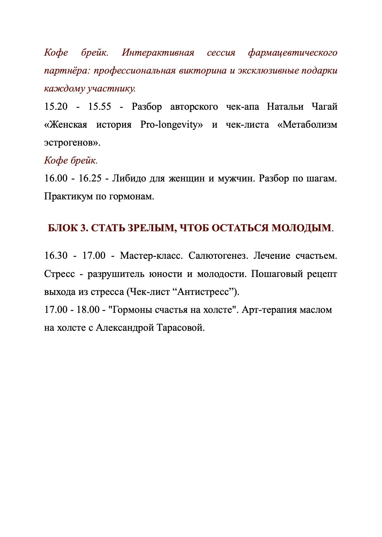 Презентация авторского чека-ап Натальи Чагай «Женская история PRO-Longevity»